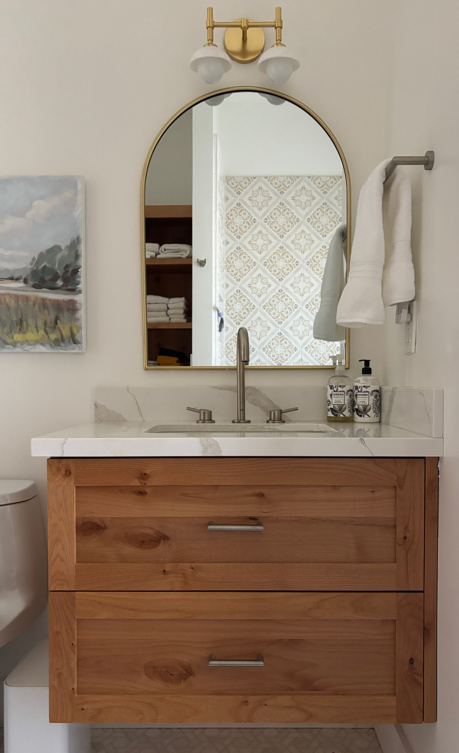 My client approached me to talk about a gorgeous property in rural California wine country. In addition to a farmhouse-style primary residence, the estate boasted acres of land nestled with olive groves, vineyards, farm animals, and pools. She envisioned renovating an existing structure to serve as the base for future family weddings and a haven where multiple generations of family members could come together for holidays and other celebrations. Her husband wanted a practice studio for his up-and-coming local band. We reimagined the building as a multi-purpose space: part vibrant entertaining area, part luxurious guest suite for visiting family. The elegant yet unfussy bunk room is the envy of any tween, while the kitchen separate from the primary residence is perfect for a midnight snack or a quiet breakfast, providing multiple spaces for large family groups.